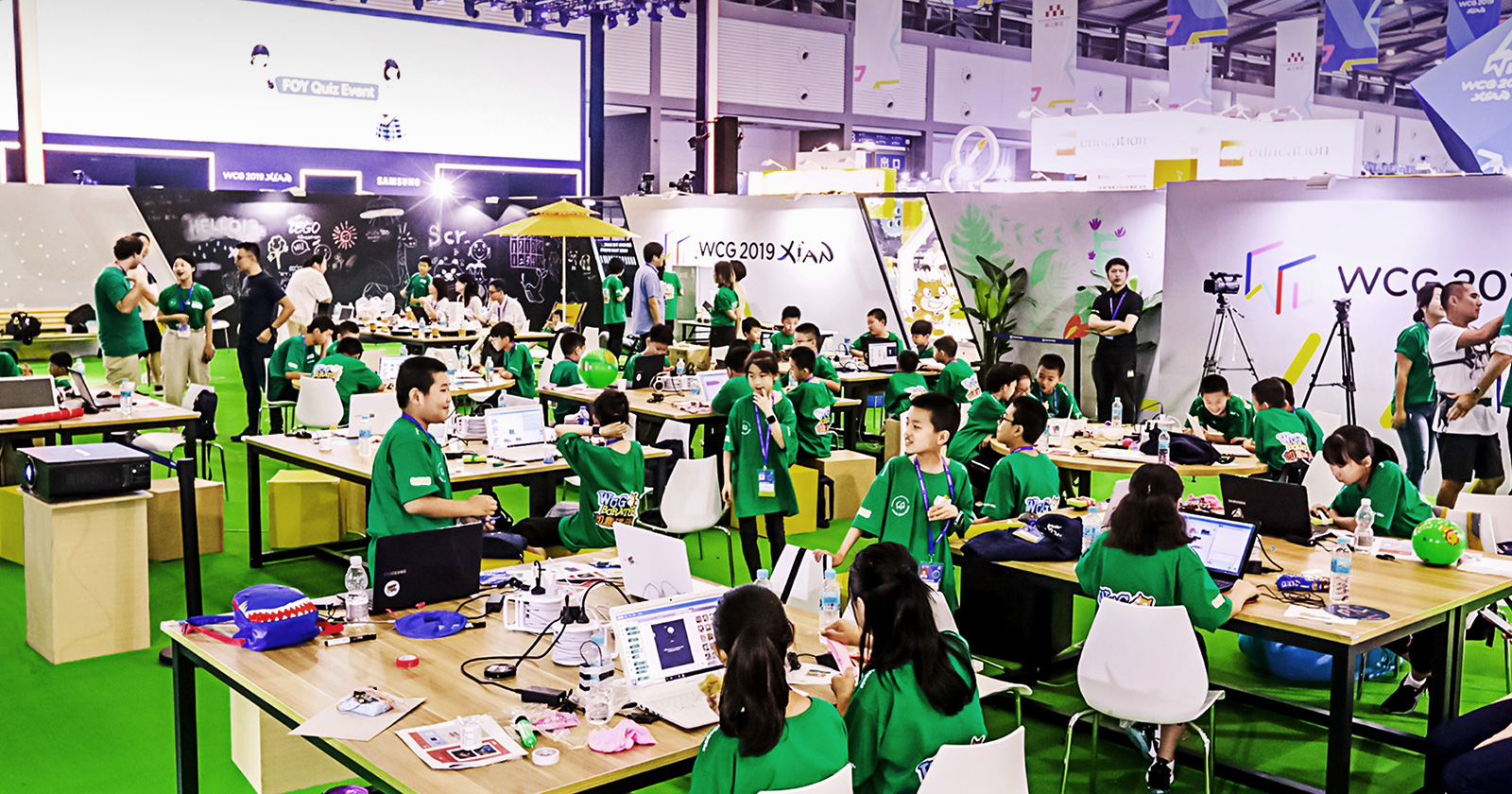 WCG 2019 Xian New Horizons was separated into 4 sections: AI, Robot Fighting, VR, and Scratch. The events that were being broadcasted, AI, Robot Fighting, and VR, proceeded from the New Horizons Stage. Scratch, the coding program workshop for kids, was led by developer Professor Mitchel Resnick, and the children of Xian were invited to participate. Booths were also created for the VR operations partners,
